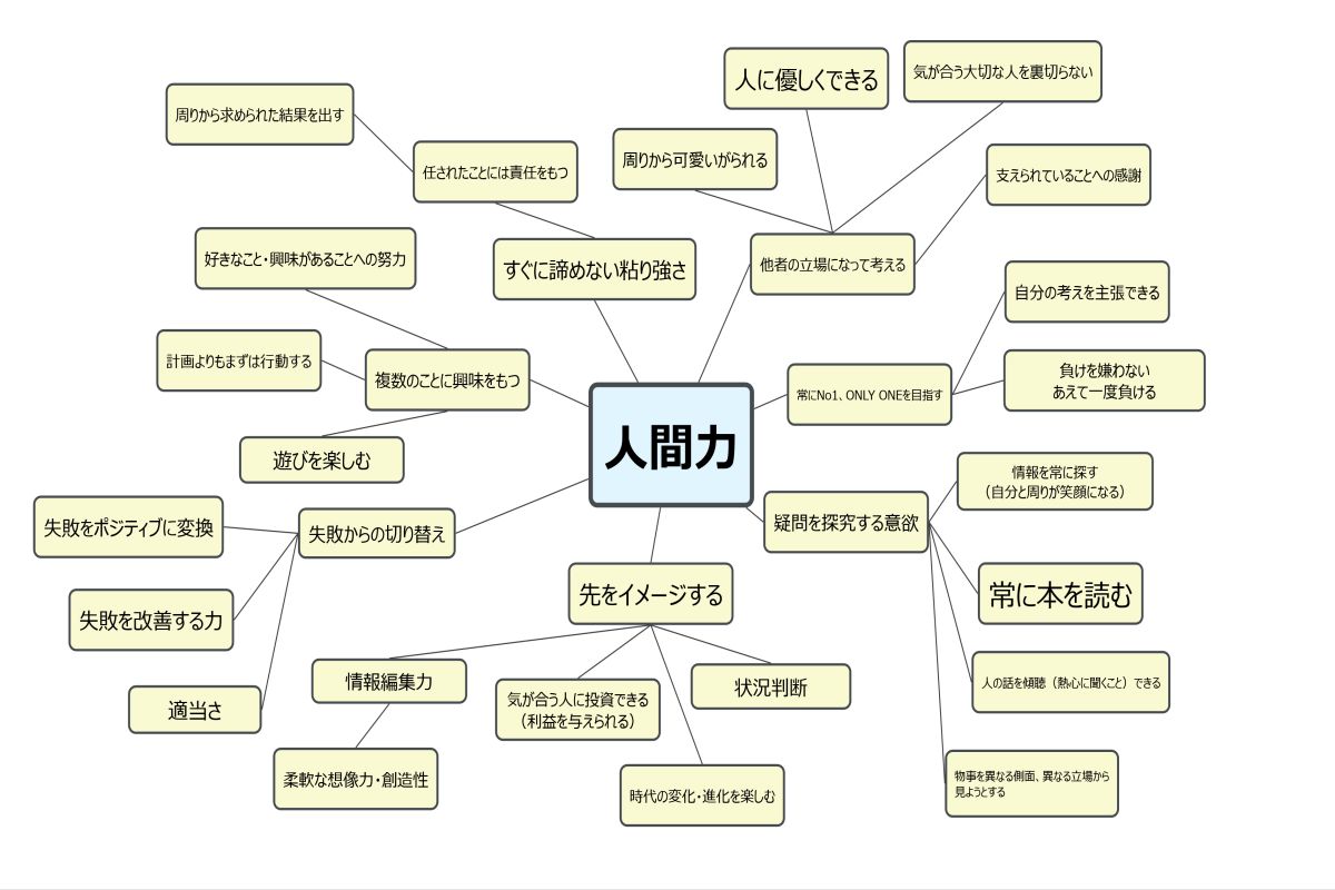 人間力という言葉には、まだ明確な定義はないので、勝手に自分の子どもと自分が関わる生徒に身につけてもらいたい力をイメージしました。